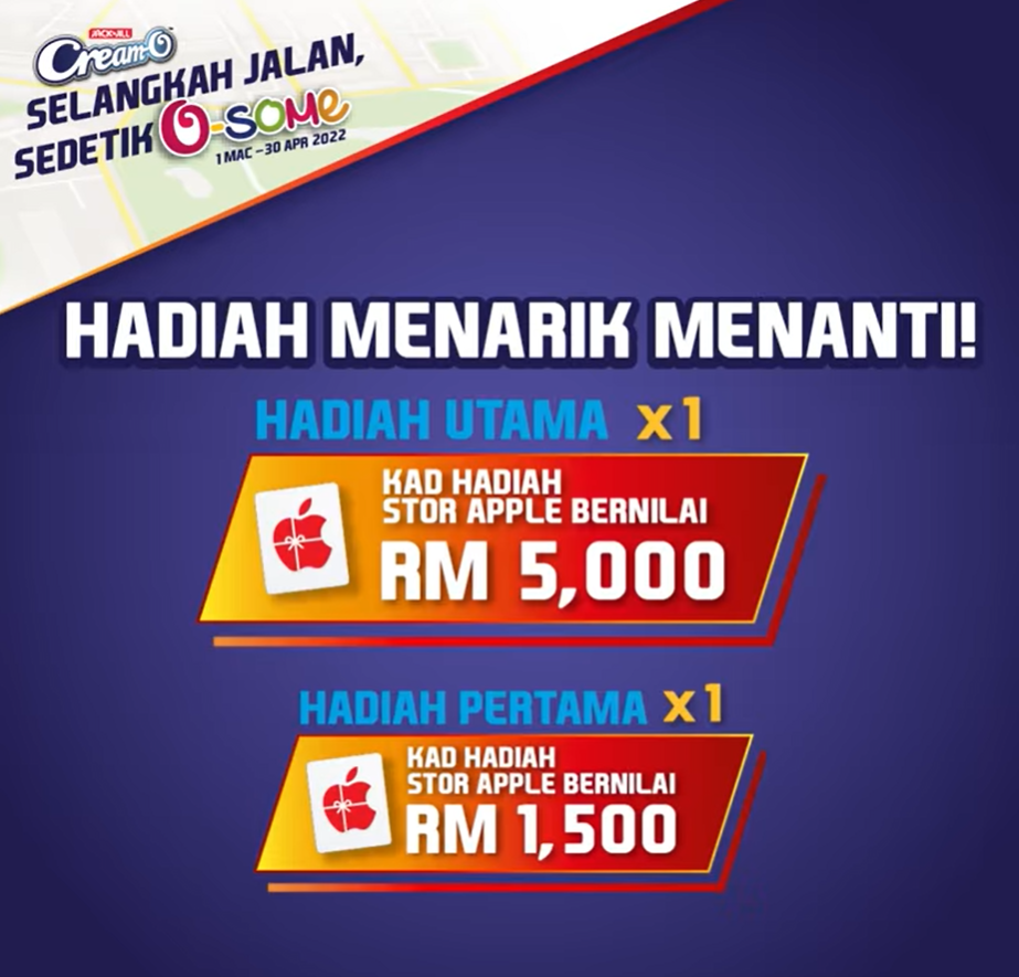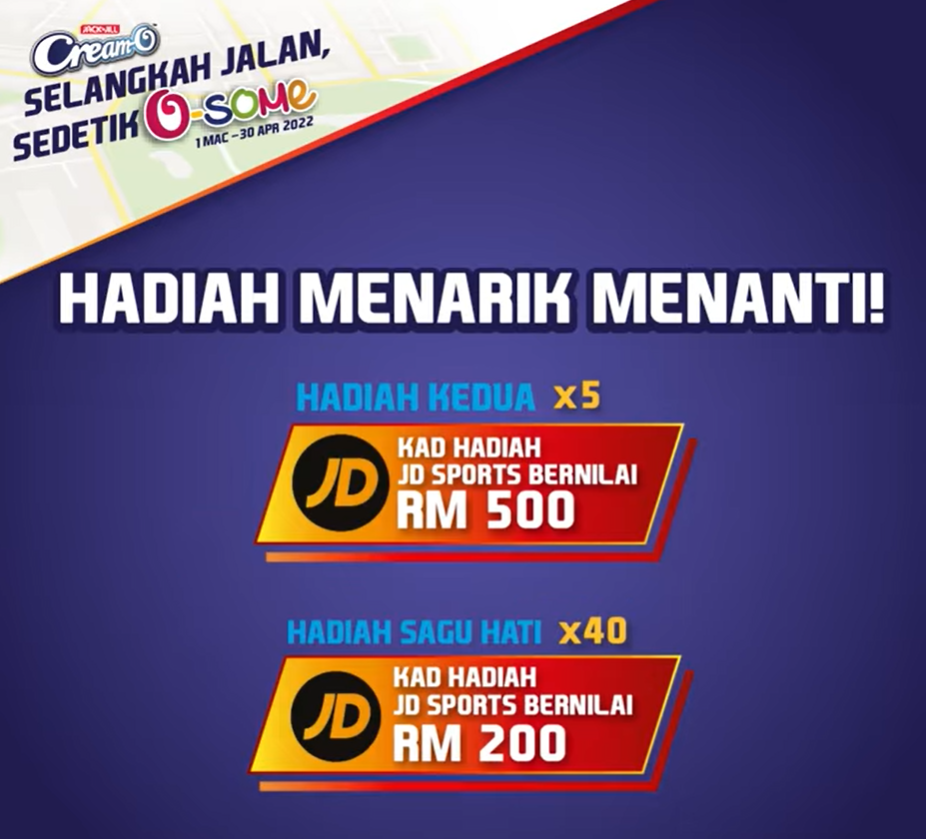 Kempen Kemasyarakatan JACK ‘n JILL Cream-O ‘SELANGKAH JALAN SEDETIK O-SOME’ | Jom sama-sama berjalan untuk berpeluang memenangi hadiah O-some, pada masa sama membantu kanak-kanak kurang bernasib baik menerusi kempen JACK ‘n JILL Cream-O ‘SELANGKAH JALAN SEDETIK O-SOME’ yang akan diadakan dari 1 Mac hingga 30 April 2022.