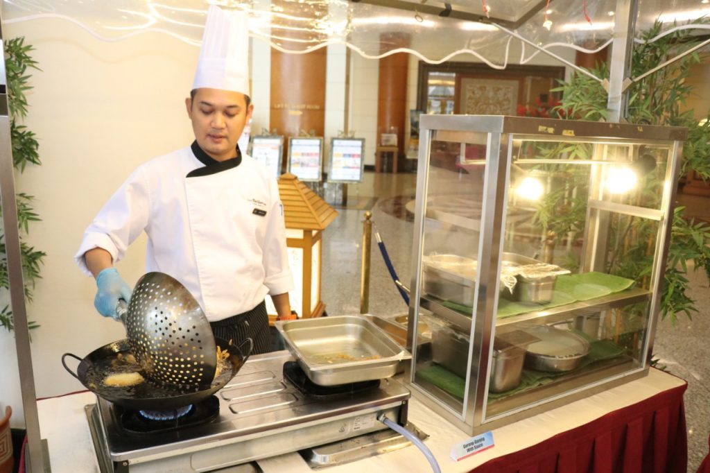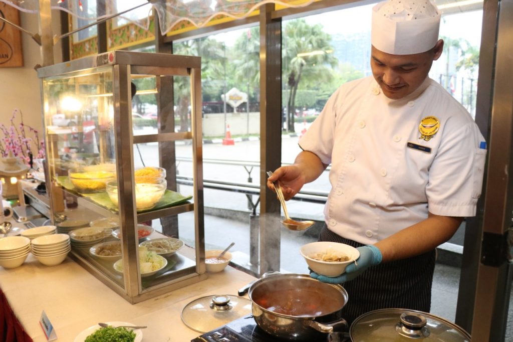 Pengunjung boleh menikmati pilihan masakan Melayu, India dan Cina serta hidangan Barat yang disediakan oleh chef kami yang berpengalaman. Penggemar masakan Melayu dan India, anda kena cuba Lamb with Red Chillies, Steamed Jasmine Rice, Green Lamb Curry with Eggplant, Roti Naan, Madrashah Curry Chicken with Coconut Milk and Dhal Vegetable Curry with Crispy Chips. Selain dari itu, pengunjung juga boleh menikmati masakan Cina seperti Chinese Fried Rice, Squid Dry Chillies, Sweet Sour Fish with Pineapple, Fried Squid in Sweet Sour Sauce dan Seasonal Green Vegetable with Herbs.