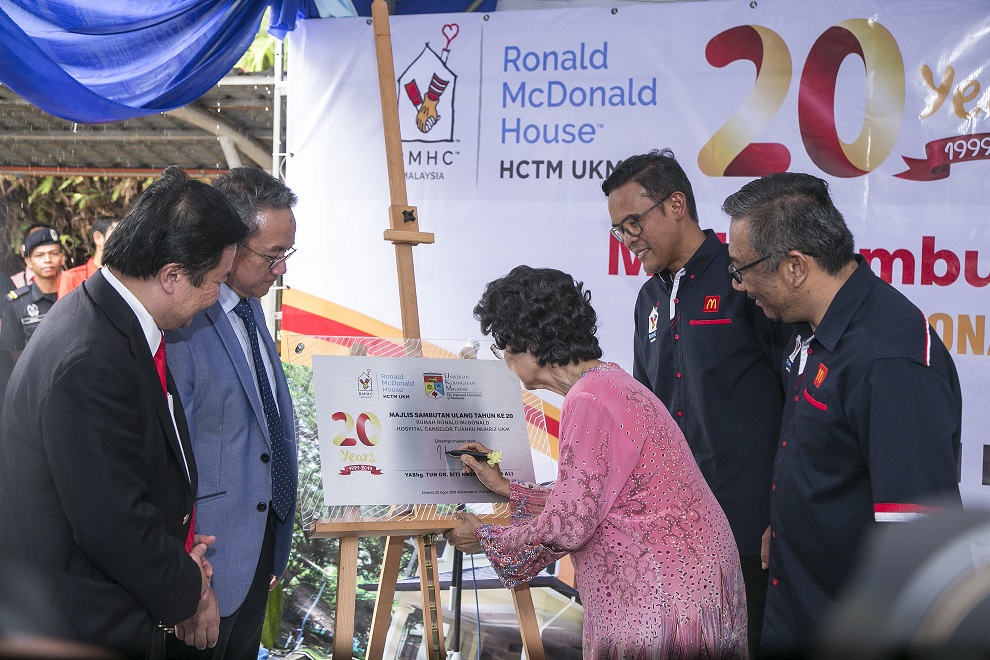 Tun Dr Siti Hasmah Mohd Ali, isteri Perdana Menteri Malaysia ketika mengimbau kenangan merasmikan pembukaan rumah ini 20 tahun lalu berkata, “Saya amat berbangga melihat komitmen berterusan yang ditunjukkan oleh RMHC Malaysia dan HCTM-UKM dalam usaha membantu keluarga-keluarga pesakit pediatrik di sini untuk berada dekat dengan anak-anak mereka yang menjalani rawatan. 20 tahun bukanlah tempoh yang singkat, dan dalam tempoh masa ini, saya terharu dengan komitmen dan sokongan semua pihak dalam memastikan kemudahan seperti ini dapat dikekalkan demi membantu kanak-kanak yang berada dalam situasi yang kritikal dan keluarga mereka.”