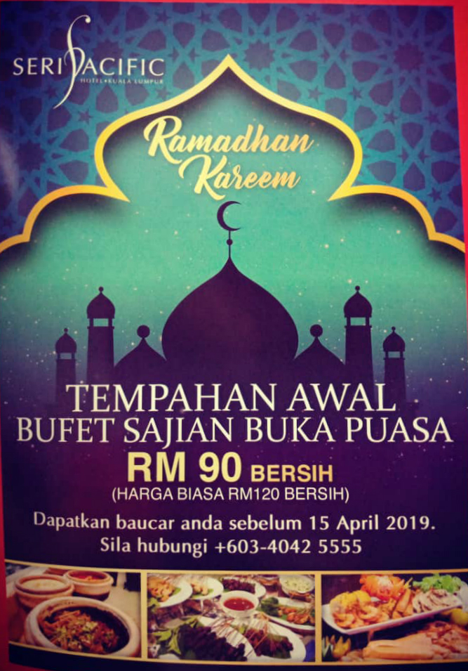 Sejak berzaman lagi Hotel Seri Pacific memang terkenal dengan sajian iftar yang pasti dapat memuaskan hati para pengunjung yang bertandang. Bermula dengan pembuka selera, halaman ulam-ulaman, pelbagai jeruk dan hidangan utama berdasarkan makanan tradisi negeri-negeri di Malaysia. Pengunjung juga boleh mencuba pizza, pasta dan sushi. Bagi yang menggemari hidangan manis, bolehlah mencuba pelbagai jenis manisan serperti aneka kuih Melayu, agar-agar, pelbagai kek, buah-buahan dan bubur manis pelbagai perasa.