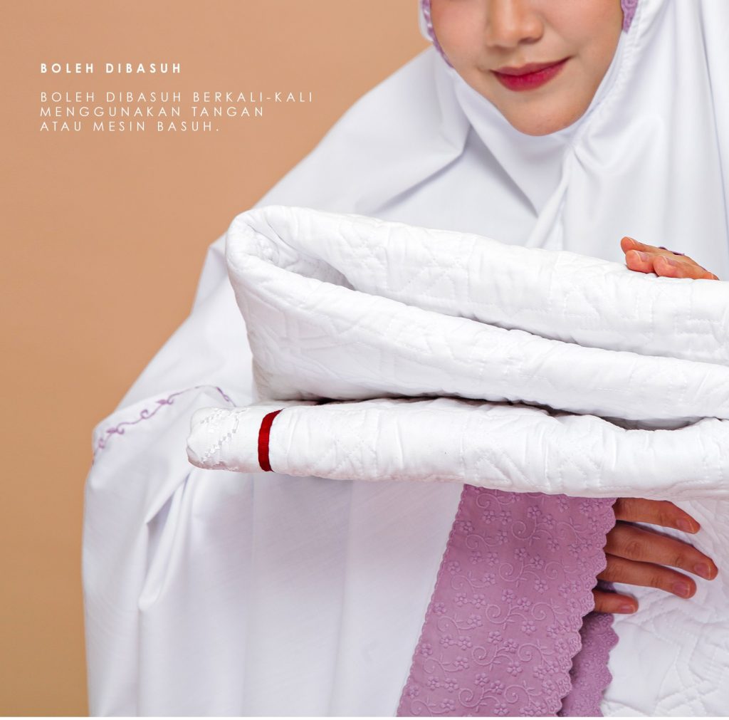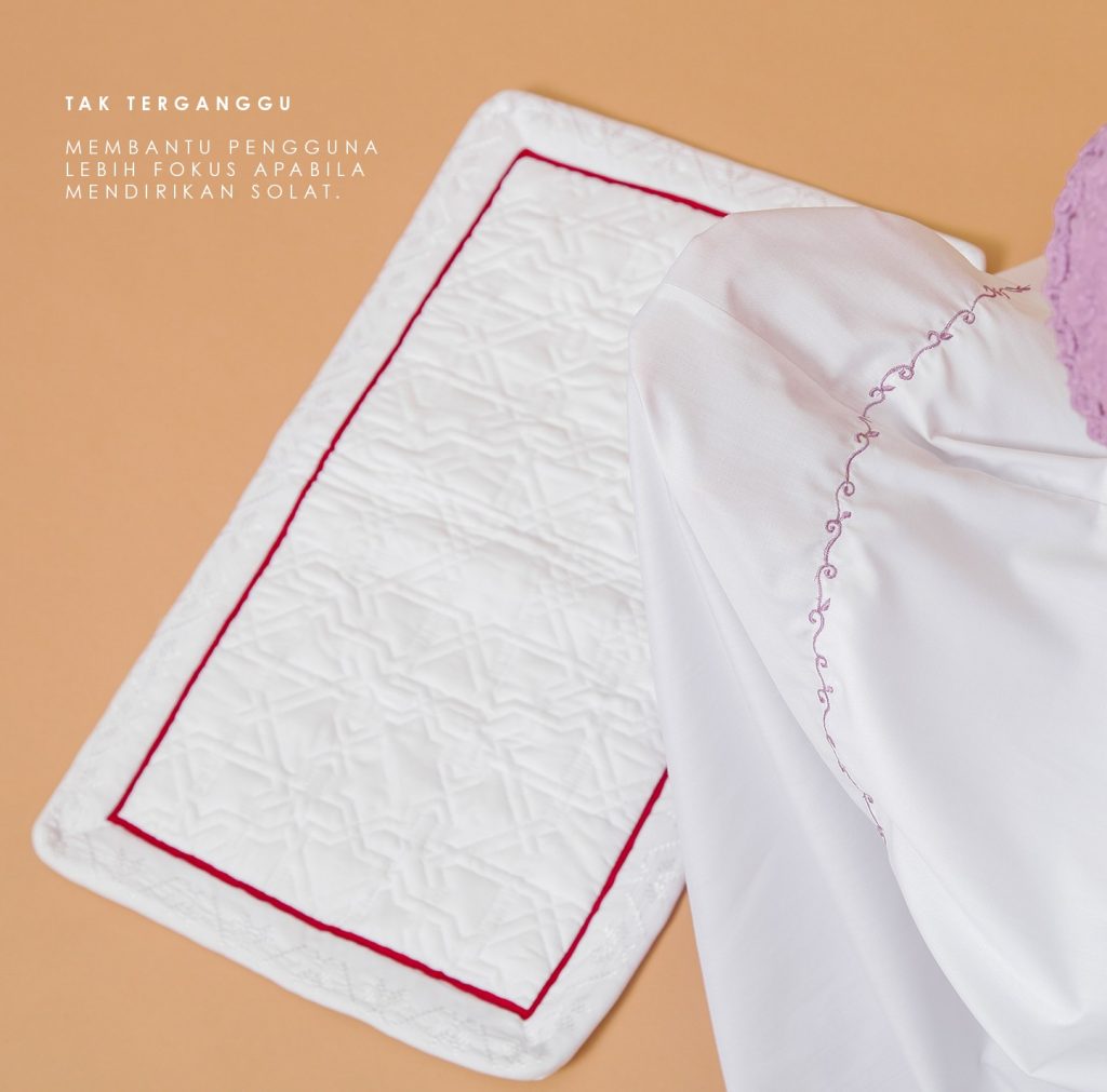 Sulaman serta riben warna maroon pada bahagian tepi pula membuatkan sejadah ini kelihatan sungguh cantik. Sejadah ini juga dihasilkan daripada material kapas asli yang memberikan keselesaan berganda kepada pengguna. Setiap pembelian sejadah mini SK X AMRU akan diberikan minyak wangi sejadah bernilai RM12.90 secara percuma kepada pengguna.