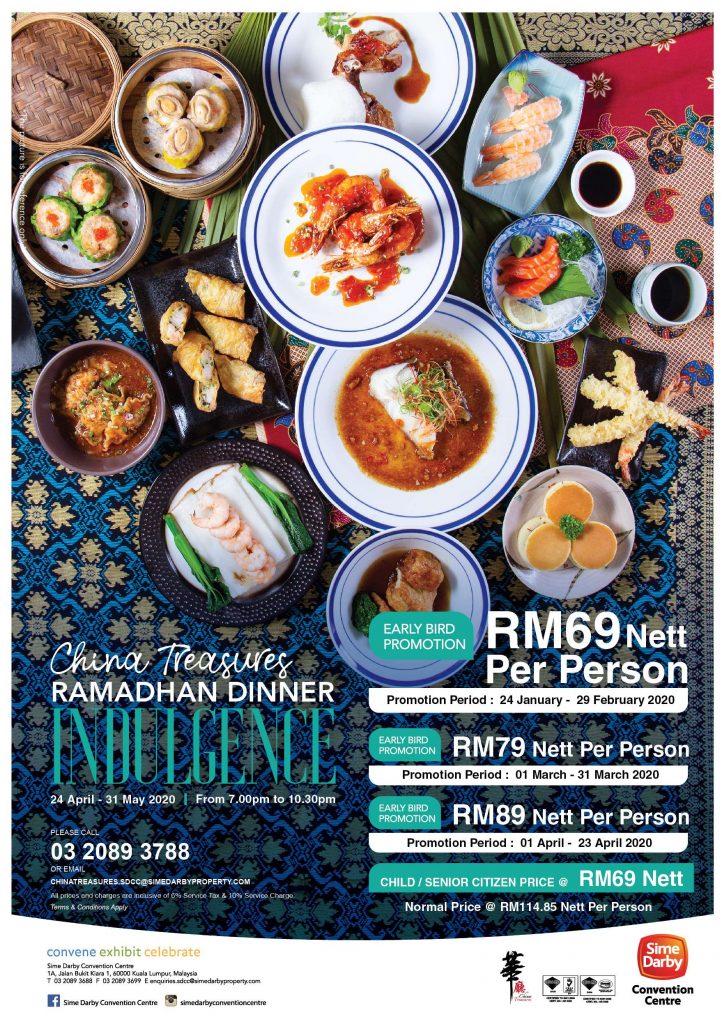 Promosi Makan Malam Ramadhan restoran China Treasures pun ada juga dan menawarkan pengunjung pengalaman berharga yang terbaik. Hidangan sedap yang boleh dimakan, bersama dengan hidangan dim sum mulai setiap hari dari jam 7.00 malam hingga 10.30 malam, bermula dari 24 April hingga 31 Mei 2020. Baucar early bird juga dijual pada harga RM69 net seorang dari 24 Januari hingga 29 Februari 2020, RM79 net seorang pada bulan Mac dan RM89 net seorang dari 1 April hingga 23 April 2020. RM99++ seorang adalah kadar selepas 23 April 2020. Kanak-kanak berumur antara 6 dan 12 tahun dan warga emas berumur 60 tahun dan ke atas membayar hanya RM69 net seorang. Kanak-kanak berumur bawah 5 tahun makan secara percuma.